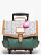 38 cm - 17 liters - 2.1 kg ~ The TANN'S 2 compartment rolling school bag is made from recycled polyester, perfect for girls aged 6 to 8. On the exterior, it features one front pocket and secures with buttons and hooks for optimal safety. Adjustable straps provide a personalized fit, allowing it to be carried by hand, on the back, or rolled for added convenience. Inside, the school bag offers two spacious compartments and one zippered pocket. It can hold an A4 folder (21x29.7 cm), several notebooks of various sizes (17x22 cm, 21x29.7 cm, 24x32 cm), a binder (17x22 cm), an A4 binder (26x32x4 cm). This school bag is ideal for keeping your child's school supplies organized and easily accessible.