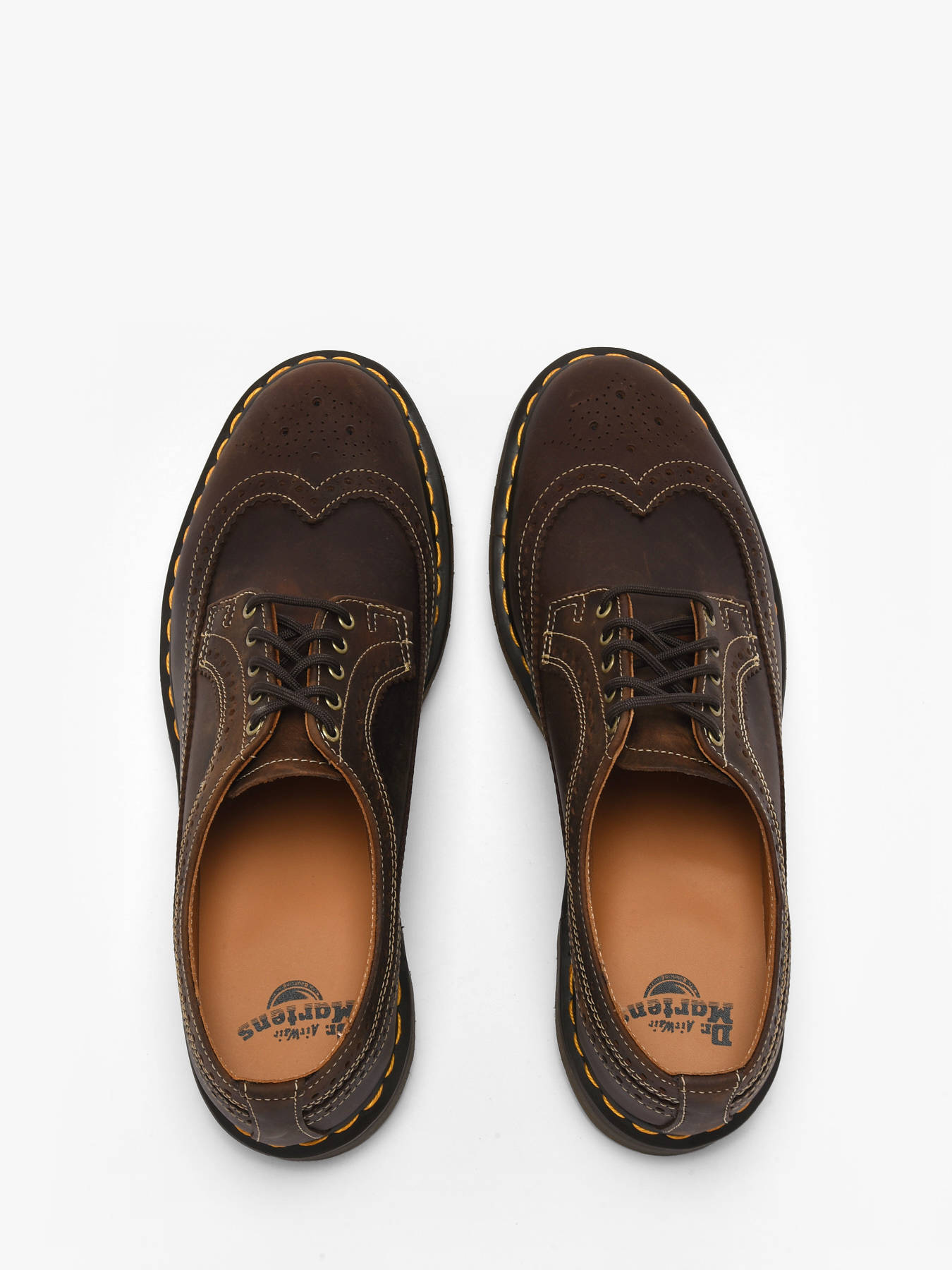 Les chaussures richelieus 3989 de Dr Martens en cuir Crazy Horse marron foncé allient tradition et caractère pour un style affirmé au quotidien. Le cuir épais texturé, sublimé par les éraflures et marques naturelles, se patine avec le temps pour révéler un look unique, tandis que les détails richelieus et les coutures contrastantes soulignent l’élégance distinctive du modèle. La semelle Doc’s renforcée avec surpiqûres jaunes assure robustesse et confort, complétée par des finitions dorées vieillies et des lacets ton sur ton pour un rendu raffiné et authentique. Polyvalentes et intemporelles, ces richelieus deviennent un incontournable pour ceux qui veulent traverser la journée avec style, assurance et la signature emblématique Dr Martens.