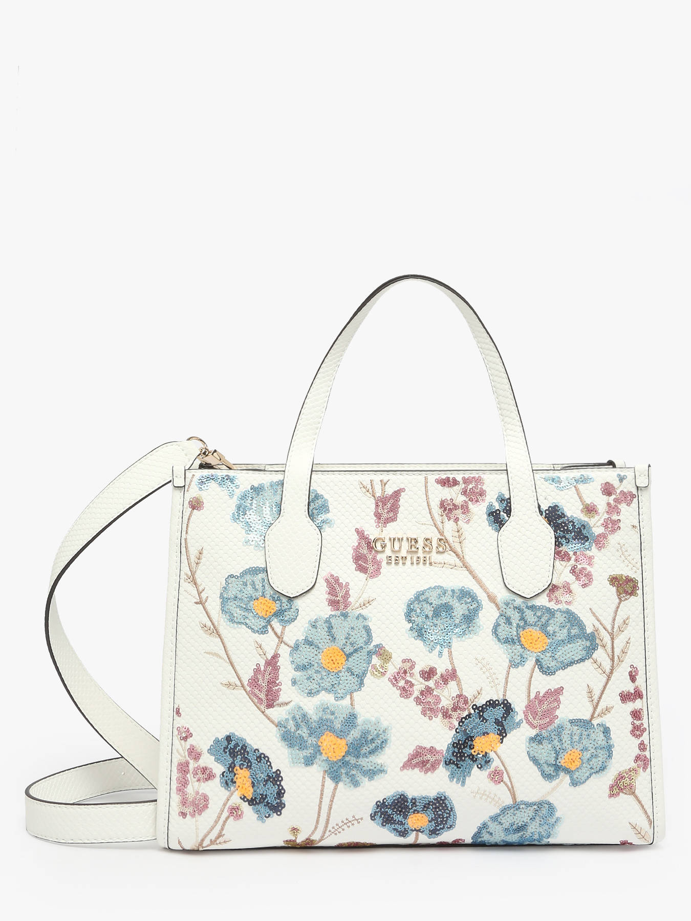 The Zaria handbag by GUESS is a chic and versatile accessory made from durable coated canvas, combining elegance and functionality. It features a secure zip closure to keep your belongings safe. With a handle height of 14 cm and an adjustable, removable shoulder strap, it offers multiple carrying options: wear it crossbody for a casual look or carry it by hand for a more sophisticated style. A practical back pocket allows quick access to essentials. Inside, two separate compartments, two slip pockets, and a zip pocket provide organized storage to keep your items neatly arranged. Lightweight and elegant, the Zaria bag is perfect to complement all your outfits, from everyday wear to special occasions.