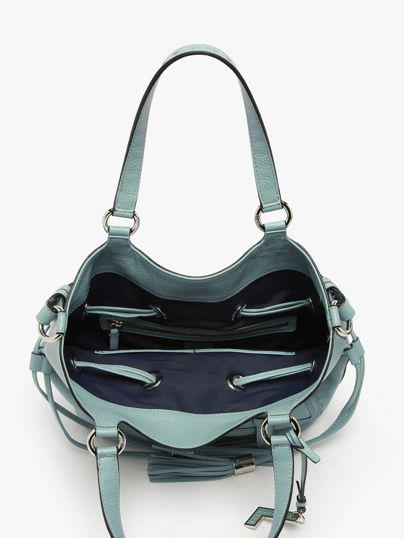 Its chic and elegant look is instantly recognisable thanks to iconic details such as the tasselled drawstring, the metallic L-shaped yoke and the flap pocket on the front.