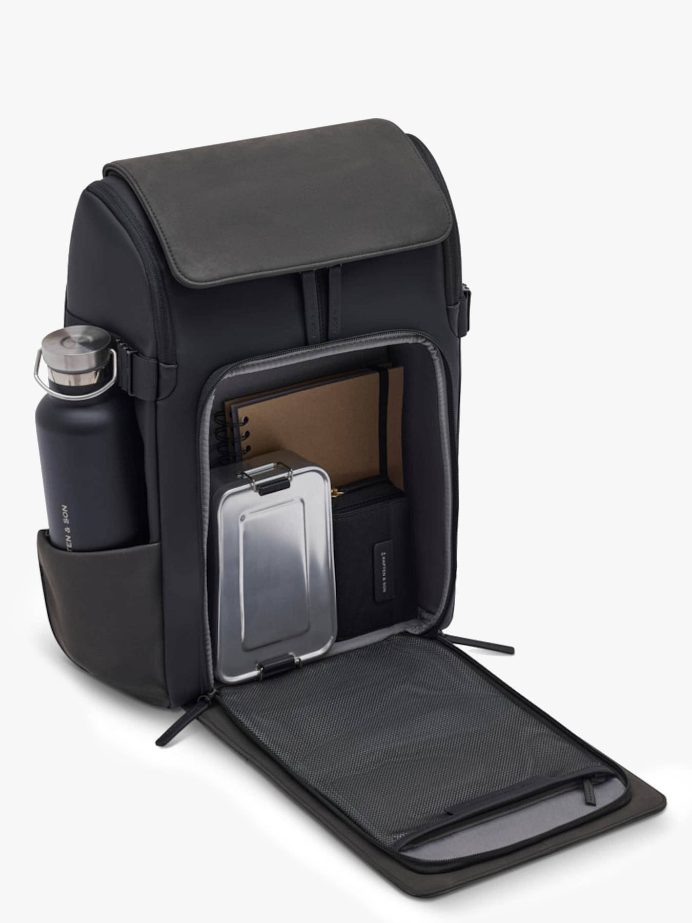 Le sac à dos business KAPTEN AND SON, conçu en P.E.T recyclé, allie fonctionnalité et engagement écologique. Sa fermeture zippée sécurise efficacement vos affaires, tandis que ses multiples poches extérieures – deux à l’avant et une sur le côté – offrent un accès facile à vos indispensables. Les bretelles réglables garantissent un confort optimal lors du porté au dos, et le passant de soutien pour poignée téléscopique permet de fixer le sac sur une valise pour faciliter vos déplacements. À l’intérieur, un compartiment principal spacieux accueille vos documents et accessoires, complété par une poche zippée et une poche dédiée pour ordinateur jusqu’à 16 pouces. Ce sac peut contenir dossiers A4, cahiers et classeurs, idéal pour une organisation parfaite en milieu professionnel. Robuste, éco-responsable et élégant, ce sac à dos est l’allié parfait des journées bien remplies.