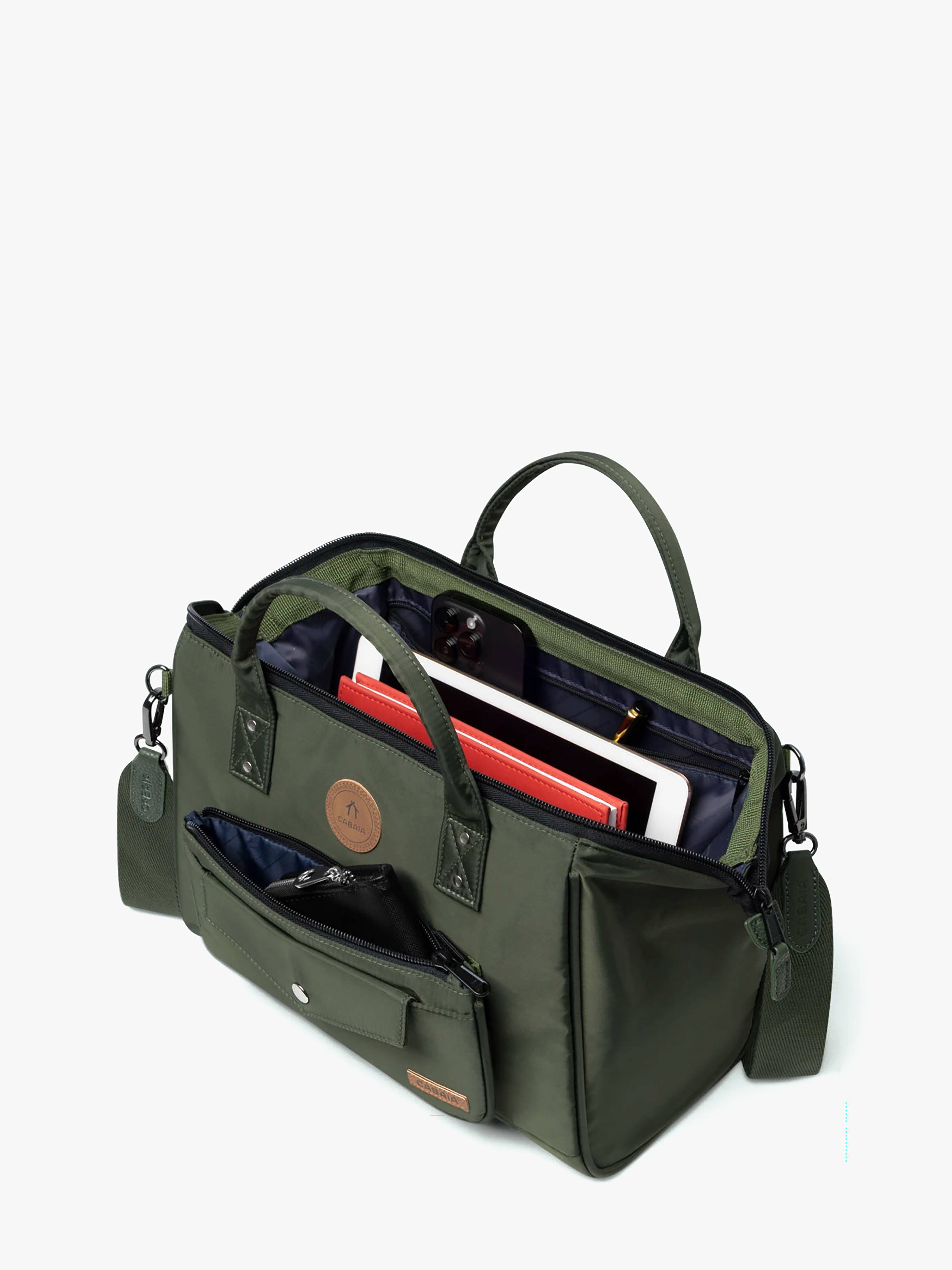 Découvrez le sac bandoulière Cabaia taille L, l’allié idéal du quotidien. Léger (505 g) mais spacieux (9,2 L), il combine design fonctionnel et style moderne. Fabriqué en nylon recyclé déperlant avec un revêtement en polyuréthane et doublure en polyester, ce sac est vegan et garanti à vie. Pratique et bien pensé, il offre une ouverture grand angle pour un accès facile à vos affaires, une poche intérieure zippée, un séparateur avec fermeture éclair pour organiser vos essentiels, ainsi qu’une poche arrière zippée pour garder vos objets importants en sécurité. Un mousqueton intérieur permet d’accrocher vos clés pour toujours les retrouver rapidement. Livré avec une bandoulière réglable et amovible (145–168 cm) et une pochette Crossbody Medium, ce sac s’adapte à toutes vos envies. Polyvalent, résistant et élégant, il vous accompagne aussi bien au travail qu’en voyage ou en sortie citadine.