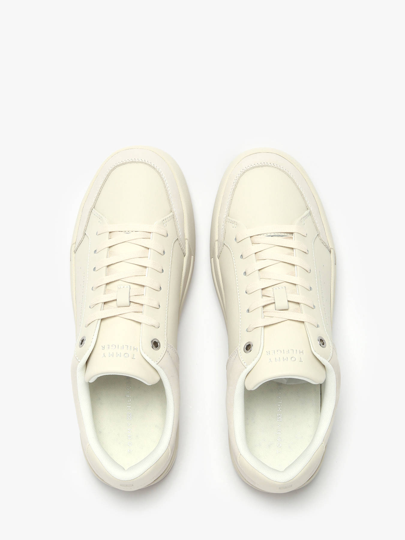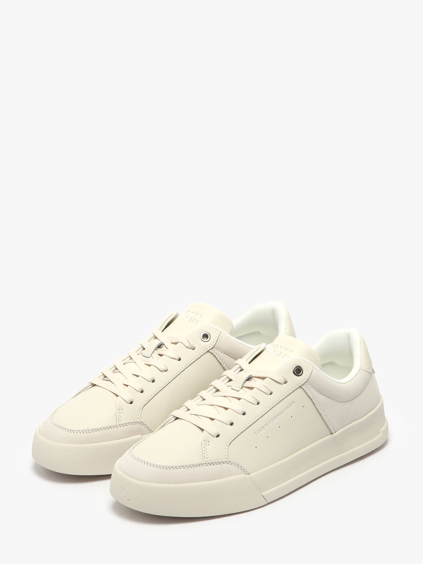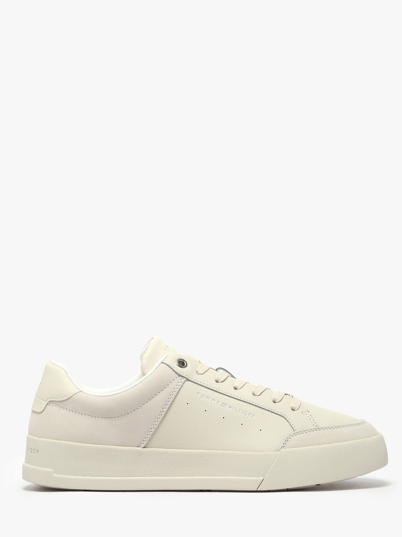 The embossed logo sneakers by Tommy Hilfiger offer a minimalist yet sophisticated style. Their mixed nubuck leather upper provides a refined finish, while the sports-inspired side perforations enhance breathability. The synthetic lining and removable insole ensure optimal comfort throughout the day. The rubber outsole delivers reliable grip and long-lasting durability. Subtle tonal branding, the embossed logo on the heel, and the discreet Tommy Hilfiger flag add an iconic touch. TOMMY HILFIGER blends timeless elegance with modern influences, crafting shoes with premium materials and meticulous craftsmanship for superior comfort and durability.