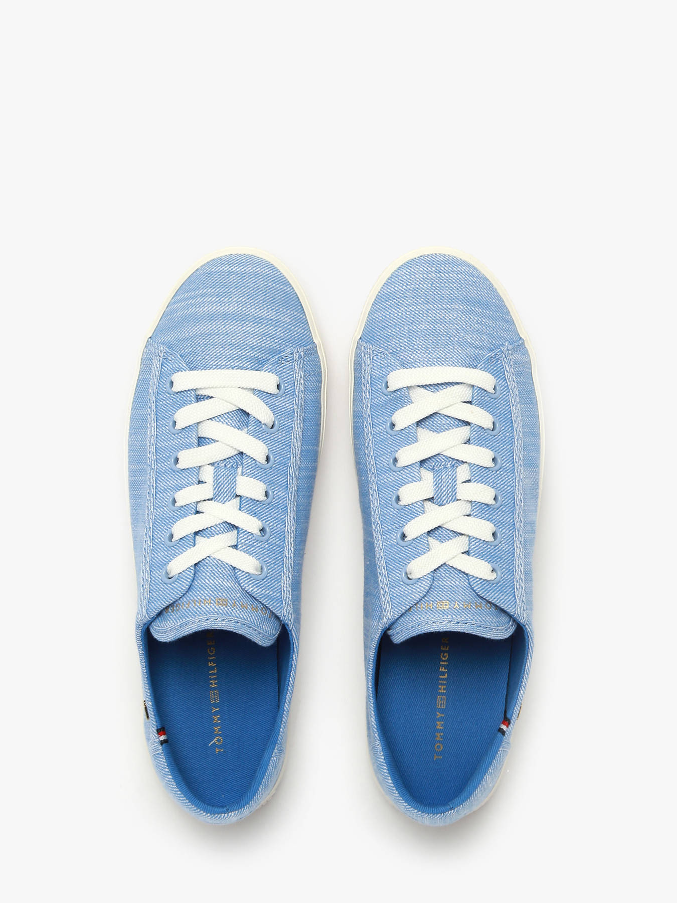 The VULC SNEAKER CHAMBREY low-top sneakers by Tommy Hilfiger combine style and comfort for everyday wear. Their sleek, classic design effortlessly complements any outfit, adding an elegant yet casual touch. Made with 60% recycled cotton, they offer a soft feel while being eco-friendly. Their durable construction ensures lasting wear, perfect for busy days. The Blue Spell color brings a fresh touch to your look. TOMMY HILFIGER embodies timeless elegance with modern influences, crafting high-quality footwear with meticulous attention to detail for ultimate comfort.