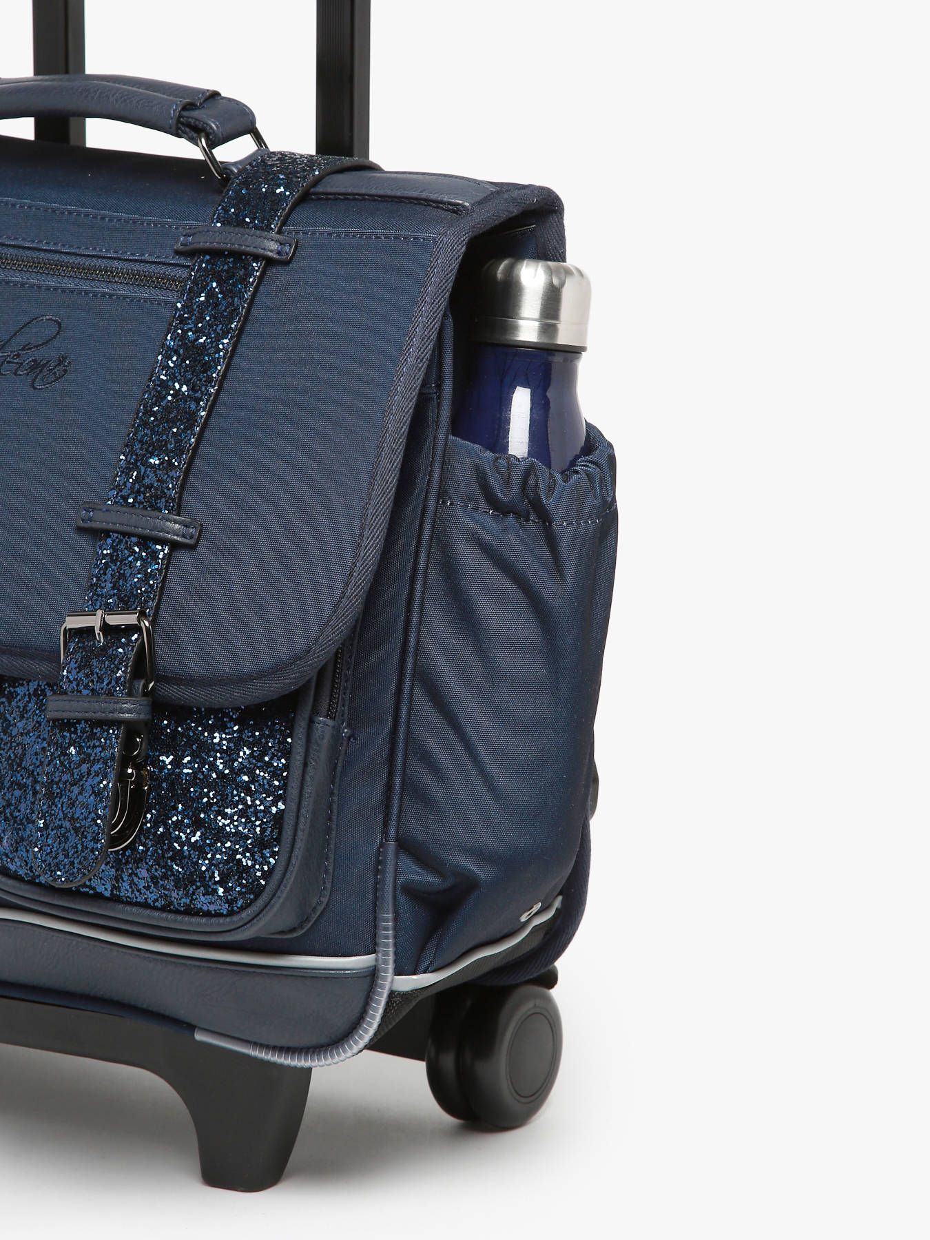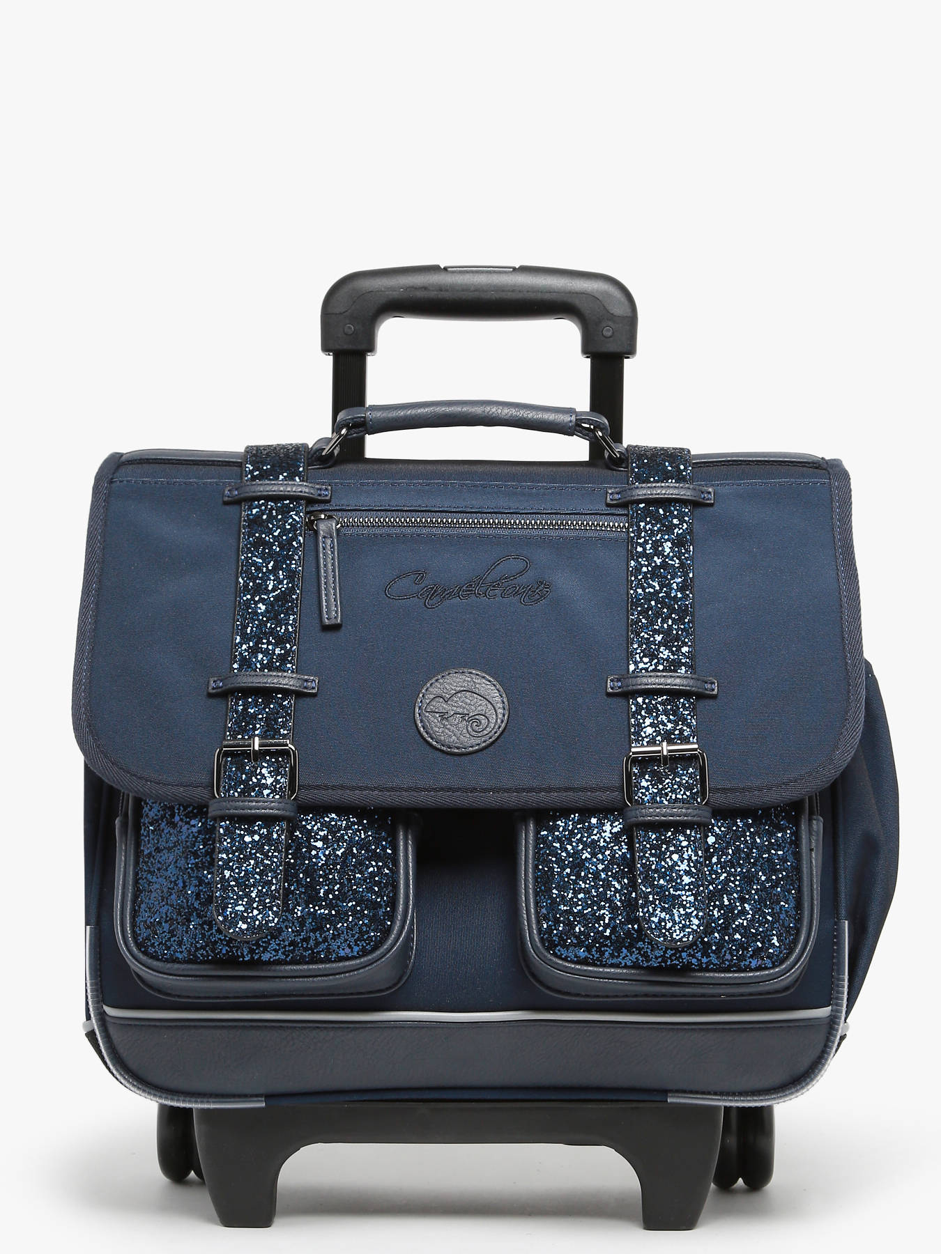 38 cm - 21 liters - 2.38 kg ~ Girl's 38 cm wheeled school bag from the Vintage Fantasy line by Caméléon. Ideal for CP, CE1 and CE2. Composed of 2 compartments separated by a central zipped pocket, this children's satchel is designed to store all school items. Practical, the interior consists of a zipped pocket, a special ruler space and an elastic for the water bottle. The exterior zipped pocket is ideal for storing small items such as the diary or snacks. To roll the satchel, the shoulder straps must be stored in the pocket on the back. Both reinforced and padded, this model provides comfort and resistance. On the security side, this satchel has reflective bands on the front and on the shoulder straps of the satchel. The Caméléon rolling school bag is made of waterproof recycled polyester. Little more, the rule is offered.
